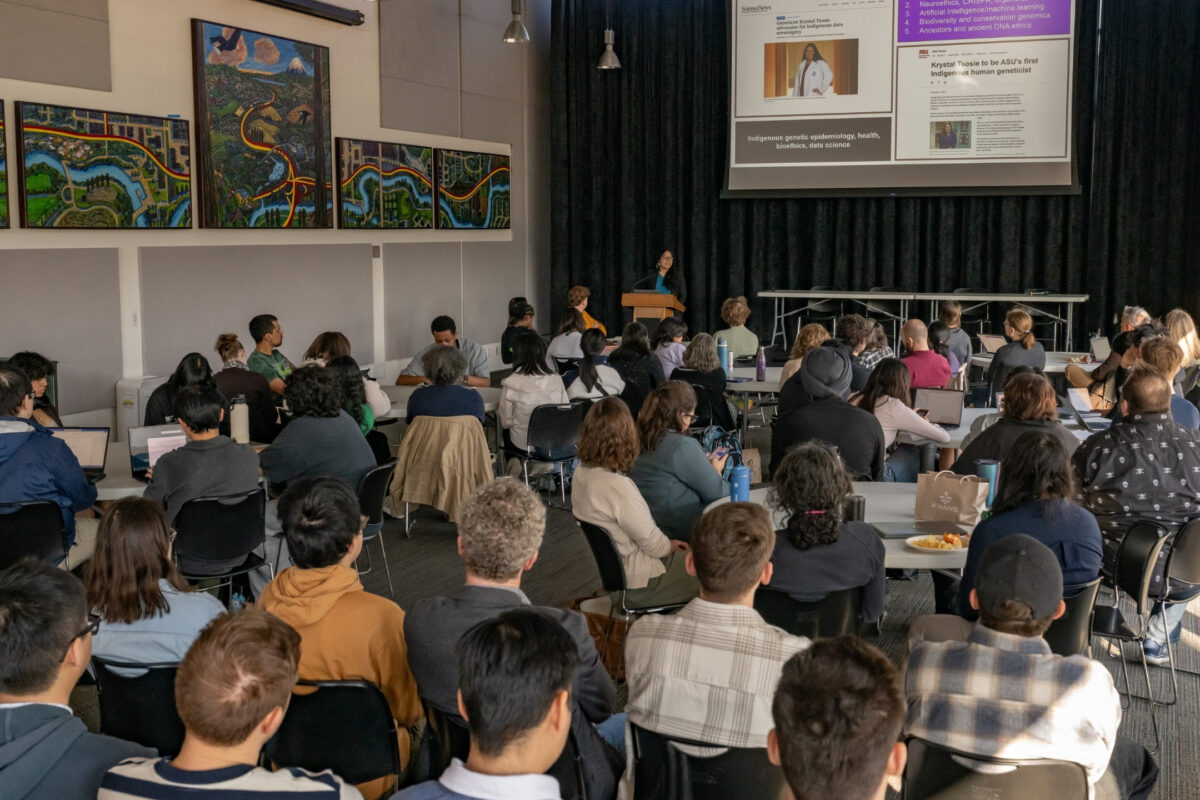 The program opened with a keynote address by Dr. Krystal Tsosie, titled “Justice & the Genome: Stories in Data for Indigenous Health & Biodiversity.” Dr. Tsosie is an Assistant Professor in the School of Life Sciences at Arizona State University.