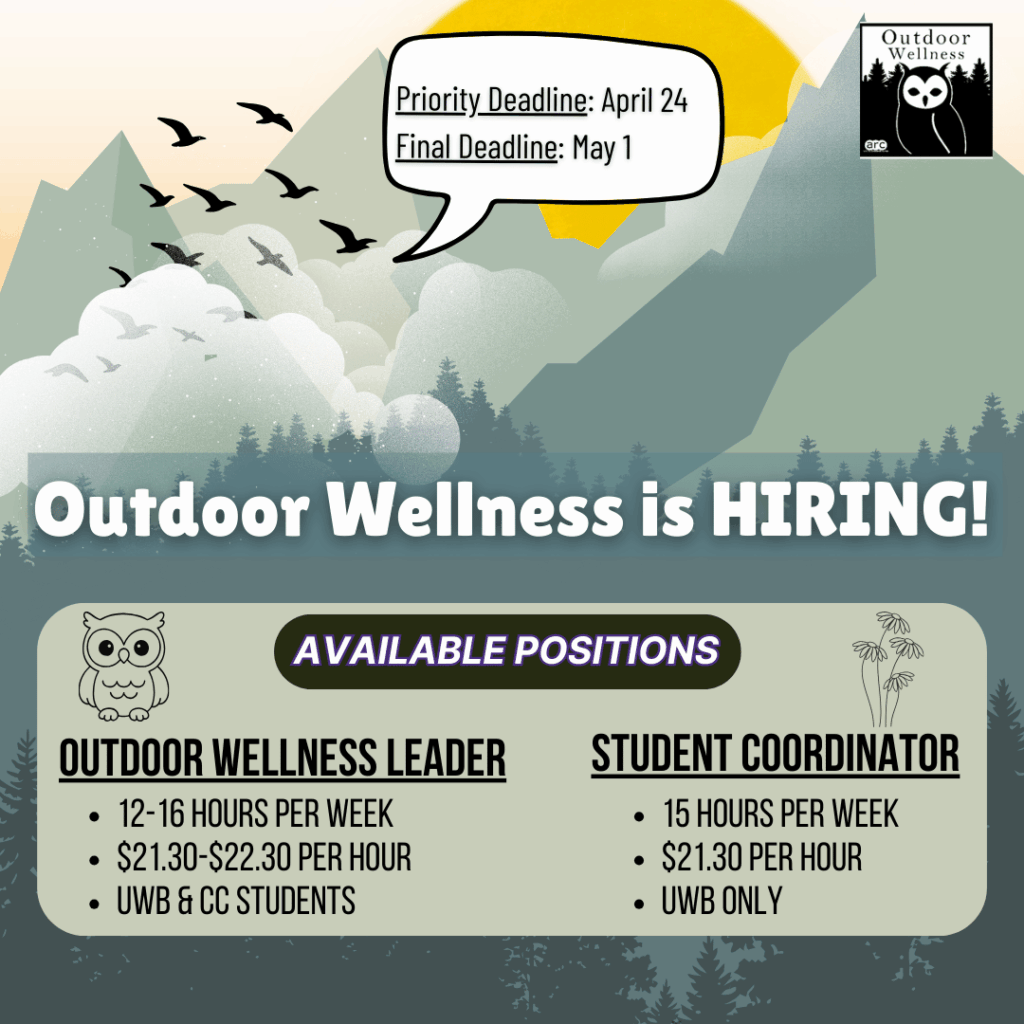 UW Bothell Students: Apply for the Outdoor Wellness Leader position through this link.