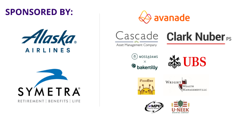 Thank you to our 2026 sponsors: Alaska Airlines, Avanade, Baker Tilly x Moss Adams, Campus Events Board, Cascade Asset Management, Clark Nuber, Symetra, U-Neek Brewing Company, UBS, Wright Wealth Management