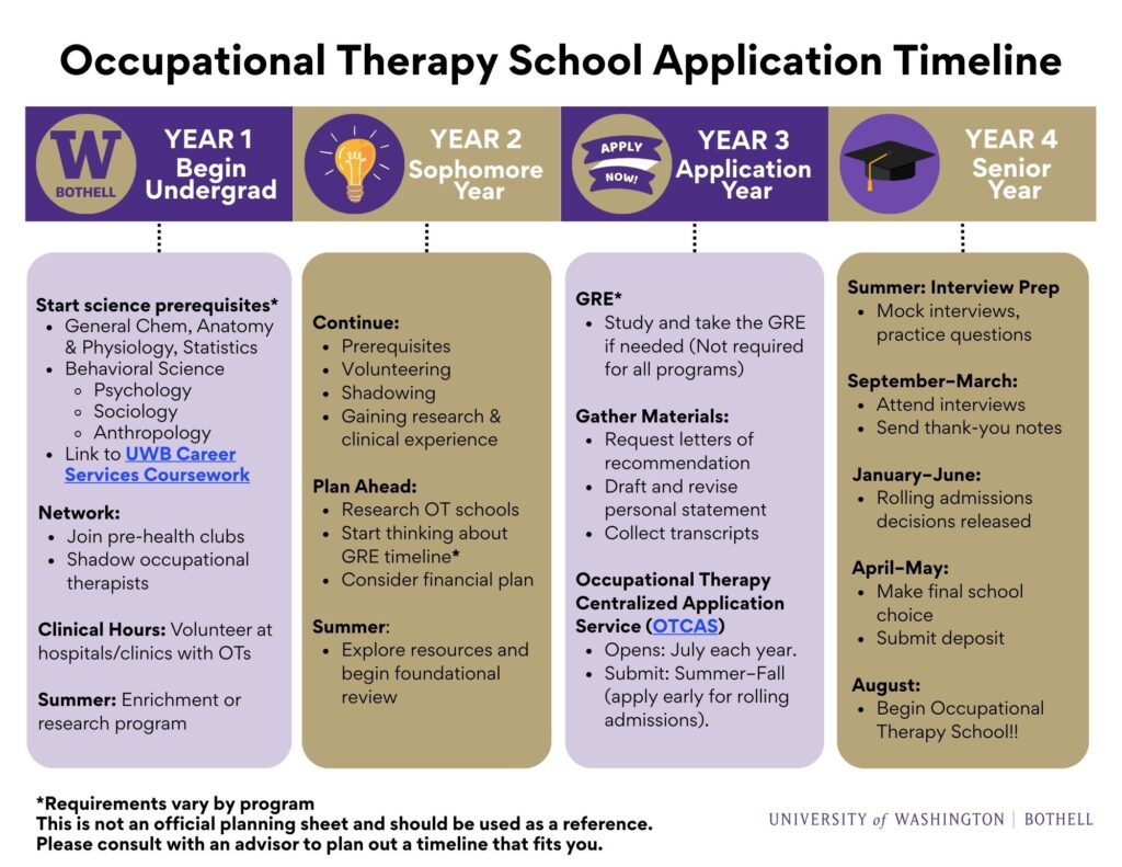 - Plan Ahead: Research OT schools, Start thinking about GRE timeline (if required – varies by program)