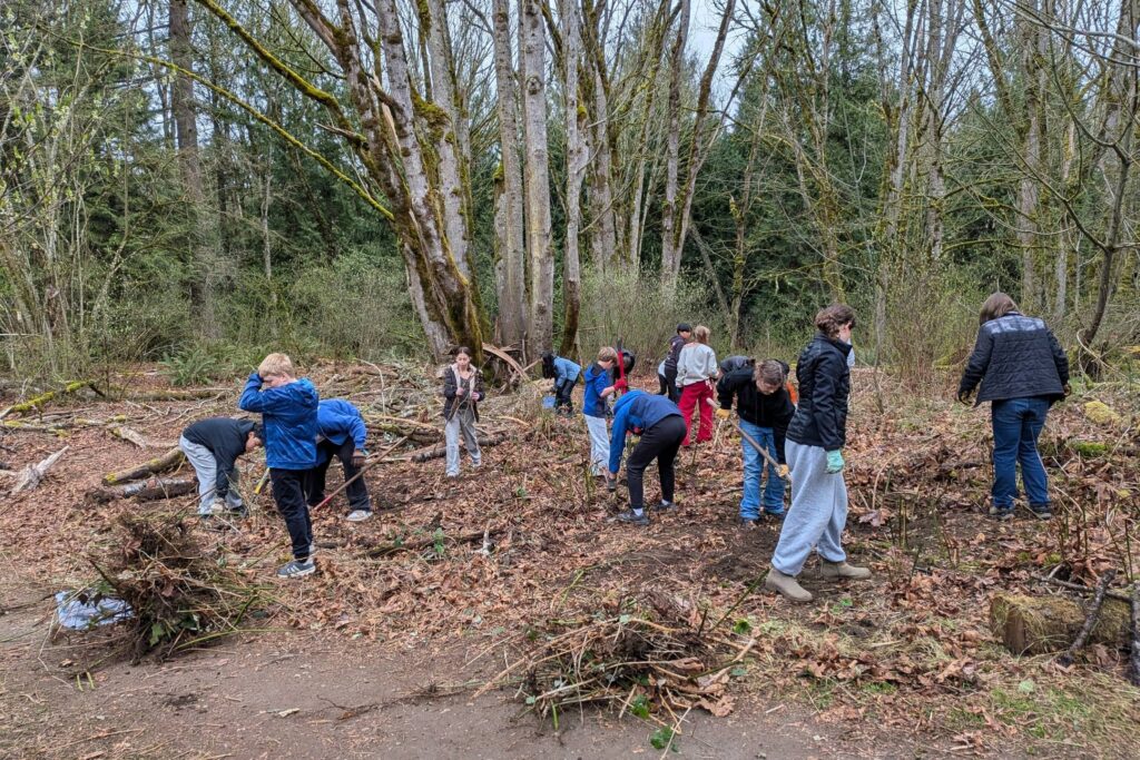 In early March, middle school students from Finn Hill EAS joined CoSEE for a three-day restoration effort focused on removing Himalayan blackberry, an invasive species that outcompetes native plants and disrupts ecosystem balance.