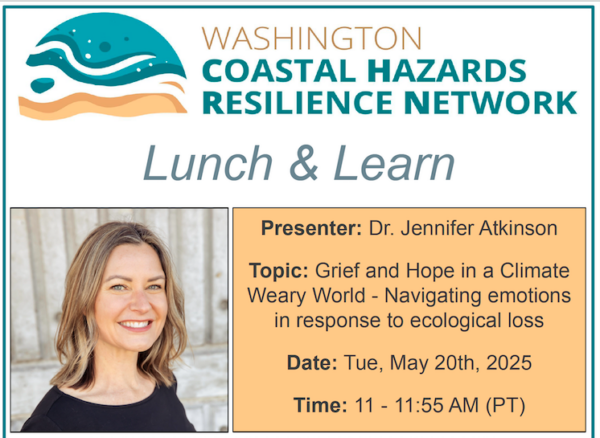 IAS faculty member Jennifer Atkinson led a seminar for Washington Coastal Hazards Resilience Network (CHRN) and Washington Sea Grant focusing on Grief and Hope in a Climate Weary World. The talk drew participants from CHRN’s wide network, including coastal practitioners from local governments, state and federal agencies, Tribes, consulting/engineering firms, researchers, and many others who...