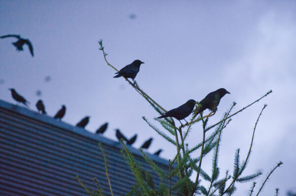 Sometimes when I go to work in the morning I think my commute is the reverse of the infamous crows that roost in the UW Bothell wetlands. They leave at dawn to go foraging. Raucous cries announce a few hopping through my yard, turning over leaves and relieving themselves wherever they perch. After I return home, they fly back to the wetlands in huge flocks at dusk. We come and go in alternate directions.