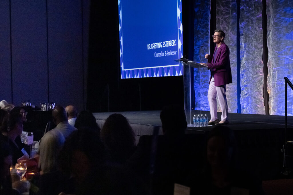 Chancellor Esterberg underlined the importance of her role representing and advocating for UW Bothell during these trying times, including the attacks on higher education. She also reminded everyone in the room that UW Bothell can be a source of hope even in times that feel dark.