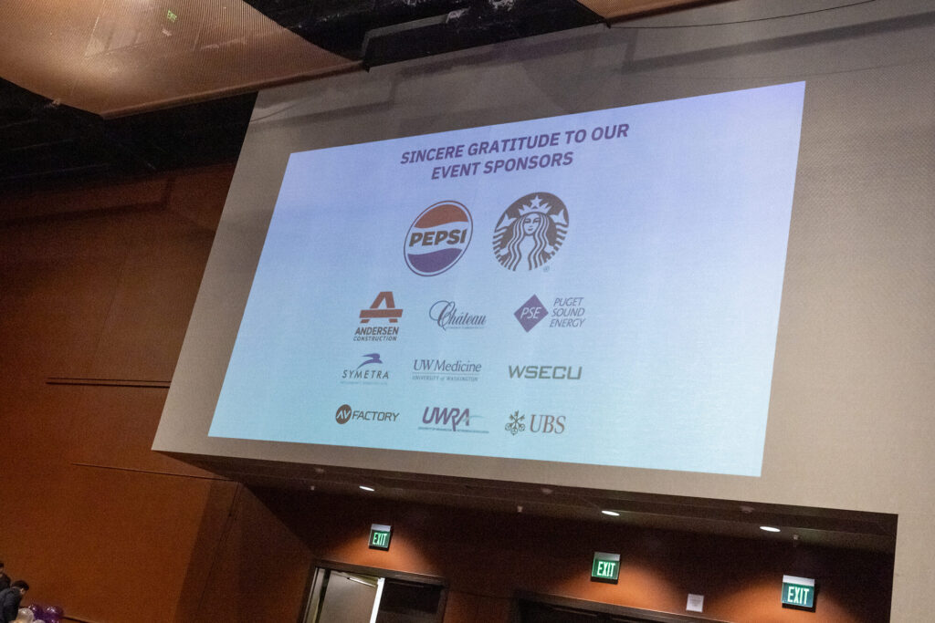 Stories about how students thrive during their UW Bothell Husky experience were central to the event. Some of those experiences were on display at a “pre-party” before the main program as multiple students from campus clubs met with attendees to showcase their projects and passions.