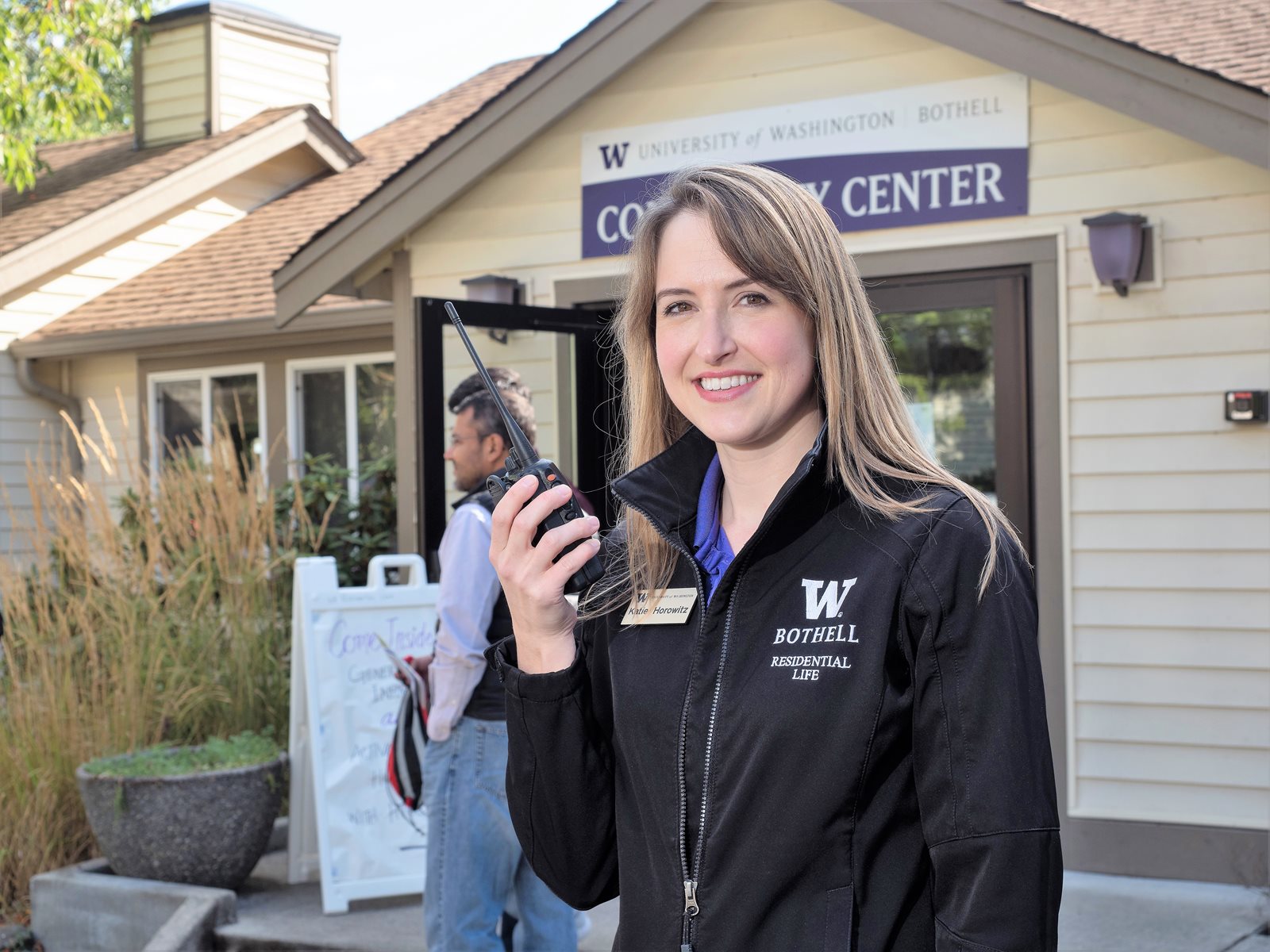 Residents picked up their keys from staff under the supervision of Katie Horowitz, left, the director of residential life and student conduct, who says her team's mission is to help students build community and to foster a sense of belonging at UW Bothell.
